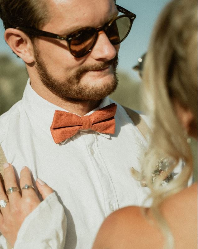 Your quest for the perfect bow ties for men ends here. The ideal men’s gift, this burnt orange cotton bow tie is key to dapper dressing. Elevate your wedding attire with this perfect tie accessory.